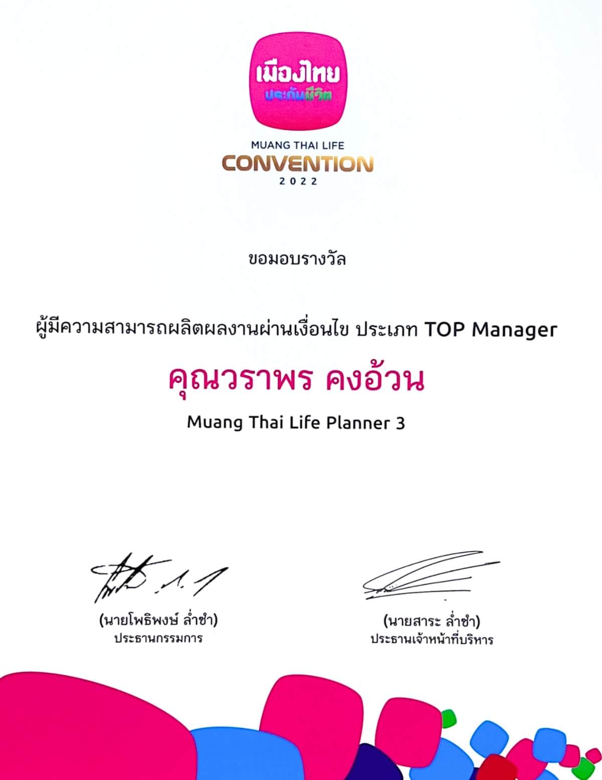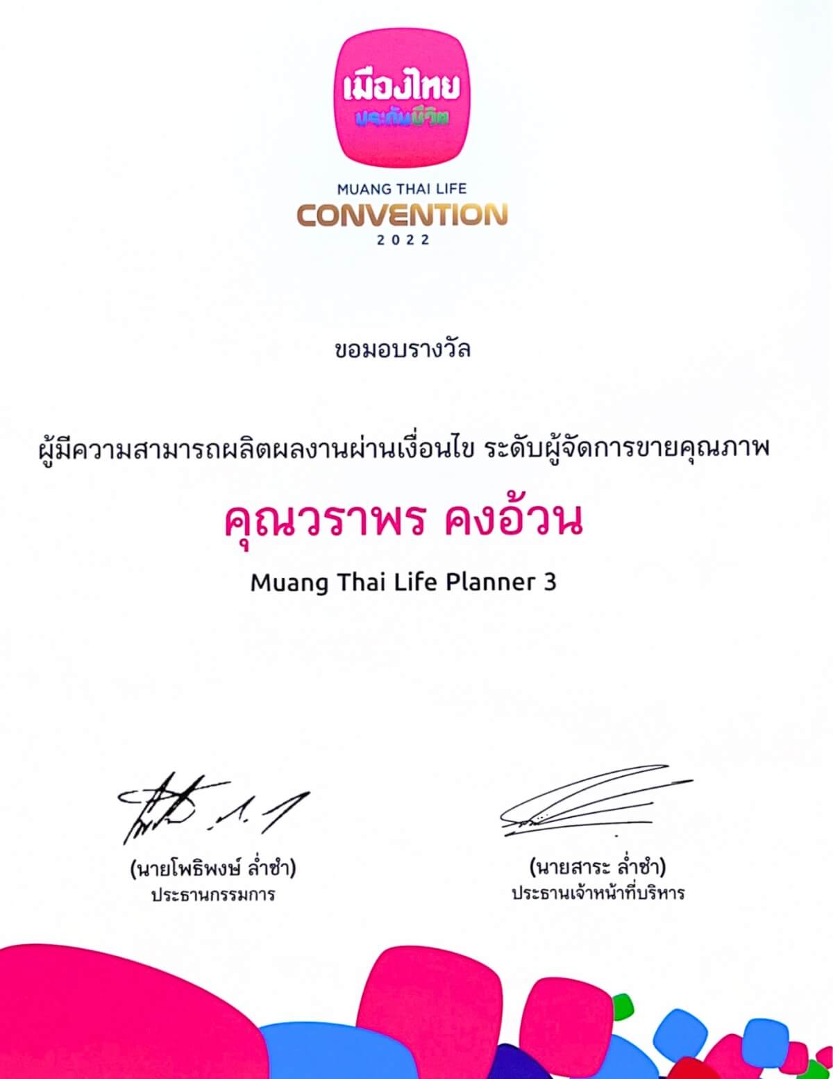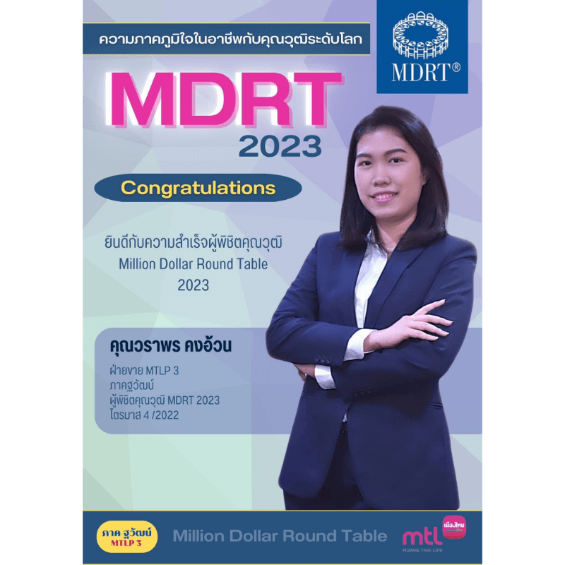 รางวัลคุณวุฒิ MDRT จากสมาคมตัวแทนประกันชีวิตระดับโลก ในปี 2022 รางวัลคุณวุฒิ MDRT จากสมาคมตัวแทนประกันชีวิตระดับโลก ในปี 2023 รางวัลคุณวุฒิ MDRT จากสมาคมตัวแทนประกันชีวิตระดับโลก ในปี 2024 ผู้มีความสามารถผลิตผลงานผ่านเงื่อนไข ประเภท TOP Manager ผู้มีความสามารถผลิตผลงานผ่านเงื่อนไข ระดับผู้จัดการขายคุณภาพ ผู้ผลิตผลงาน Top Health Champion รุ่นที่ 3 บรรยากาศภายในงาน โบรชัวร์ ทีมงานคุณภาพ เรามีบุคลากรพร้อมให้คำปรึกษาด้านประกันชีวิต ออมเงิน หรือปรึกษาแนะนำการลงทุนให้ท่าน ปฏิวัติ ฤาชัยราม สาวิตรี โพธิ์พรมศรี กนก สาวิสิทธิ์ จิรา ศรีอนันต์ พรทิพย์ แสงภูผา ผู้จัดการขาย